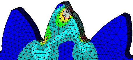 В зависимости от кривизны в основании зубьев существенно изменяется напряженность зубчатой передачи. Отсюда возникает потребность минимизировать уровень напряжений путем выбора той формы переходной кривой, при которой уровень напряжений будет минимальным. Для решения этой задачи применяются как программы конечно-элементного анализа ANSIS и NASTRAN (рис.3.3).
