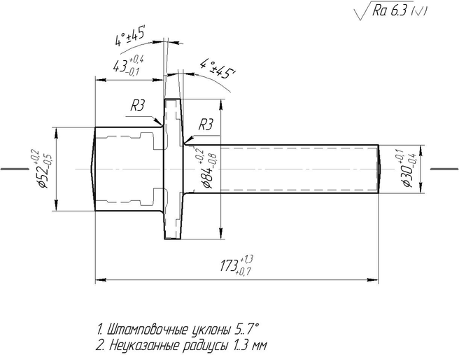 Вывод: на основании проведенного анализа выбираем в качестве заготовки поковку, получаемую методом горячей объемной штамповкой класс точности Т4, степень сложности С1 по ГОСТ 7505-89. Эскиз заготовки приведен на рисунке 5.