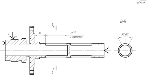 На чертеже детали «стакан» заданы требования несовпадения кромок двух соседних пазов (рисунок 8).