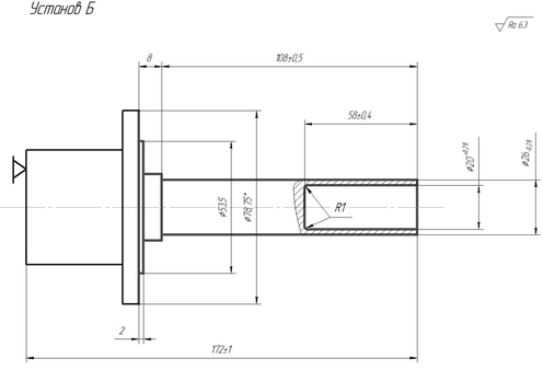 На основании разработанного маршрута обработки основных поверхностей и маршрутного описания обработки детали можно сделать вывод, что для обработки всех поверхностей на операции 005 потребуется 6 переходов, которые будут выполняться за 2 установа, на операции 015 необходимо 3 перехода при неизменном закреплении, операция 020 выполняется за один переход.