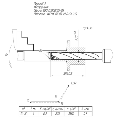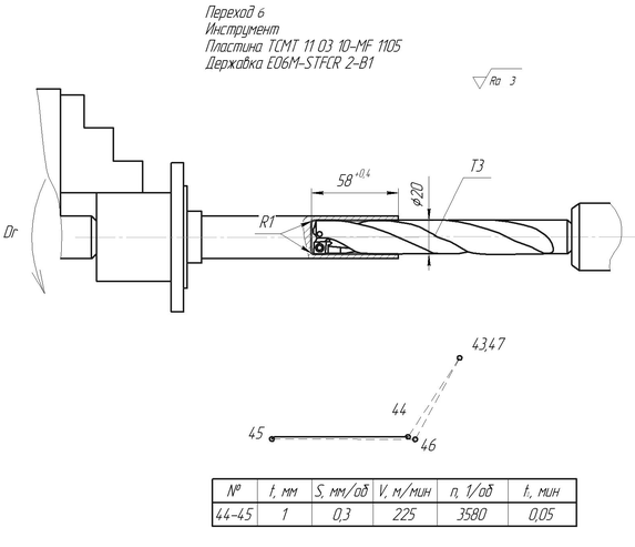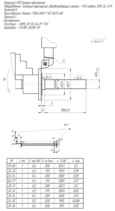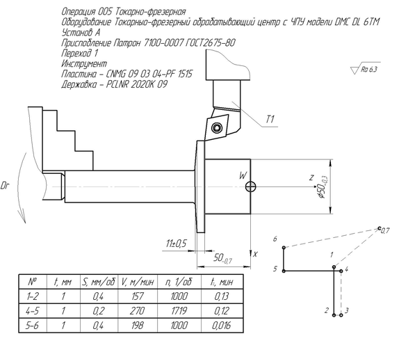 Режимы резания сведены в таблицы в соответствии с опорными точками траектории инструмента. Назначение режимов выполнено в соответствии с рекомендациями, приведёнными в каталоге Sandvik Coromant.