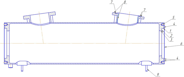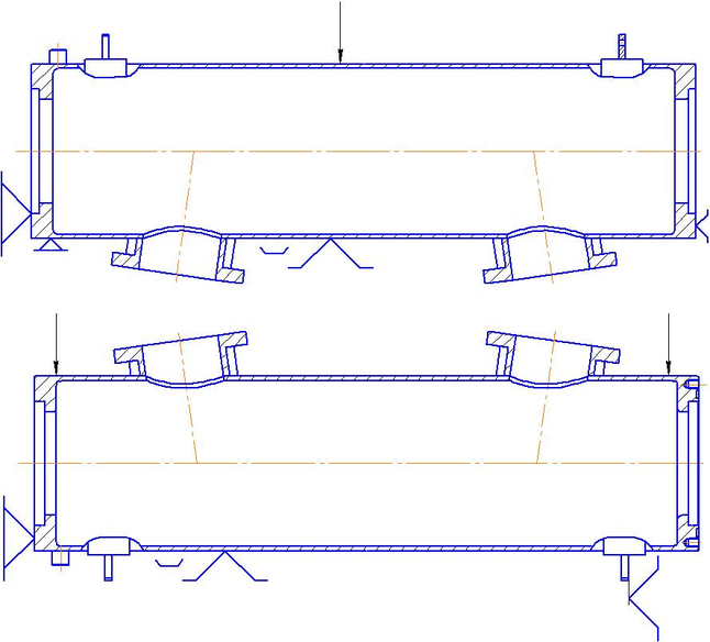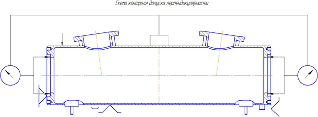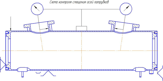 Смещение осей патрубков от плоскости симметрии резервуара не более 1мм.