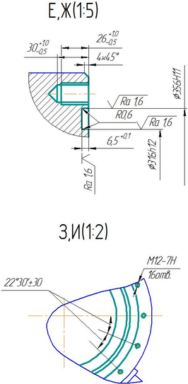 Нарезать резьбу М10-7Н в 20 отв.; М12-7Н в 16 отв.
