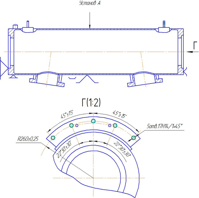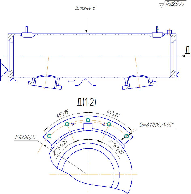 Сверлить через кондуктор 5 отв.ф17Н14 сверлом ф17(Вид Б).