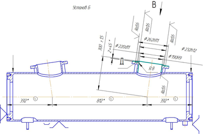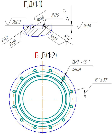 Сверлить 12 отв.ф13, фаски 1х45 град. в 12 отв.ф13(Вид В).