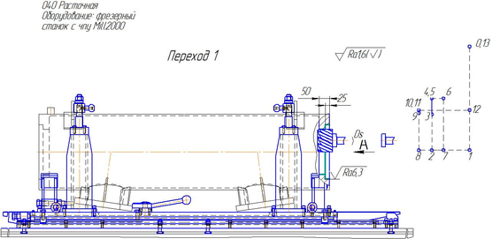 Расфрезеровать ф190Н9 на длину 50 мм. с прип. 0.2 мм. фрезой ф50.