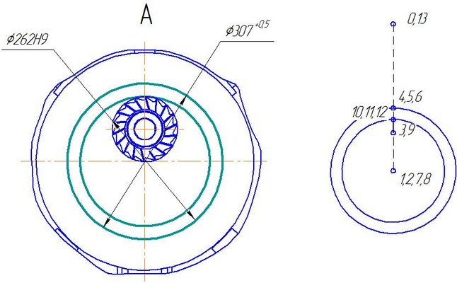 Содержание операции: профрезеровать отверстие детали Ø 262 мм и длиной 25 мм.