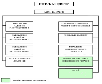 Организационная структура ОАО «Сильвинит» также достаточно традиционна для российских промышленных предприятий с советским прошлым. Организационная диаграмма представлена на рис.3.6. и 3.7.