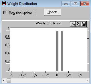 Рисунок 8 – Распределение весовых коэффициентов сети MLP 2-2-1-1