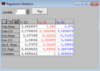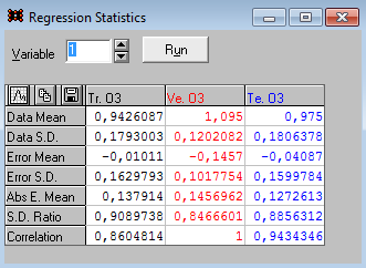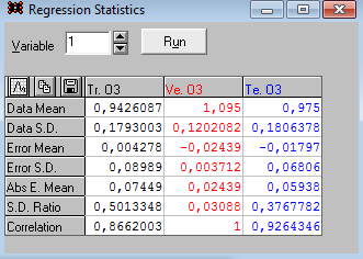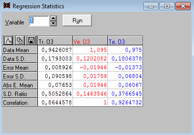 Показателем качества обучения (S.D. Ratio) является отношение стандартного отклонения ошибки прогноза (Error S.D.) к стандартному отклонению данных (Data S.D.):