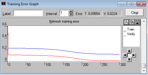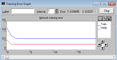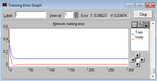 Так как этот показатель значительно меньше 1, то сеть обучилась хорошо. К тому же абсолютное значение ошибки ниже заданного (Abs E. Mean=0,019
