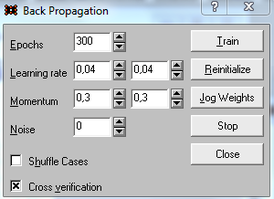 Для выбранного метода обучения предъявляем 300 эпох и назначаем оптимальные значения параметров обучения «Learning rate» и «Momentum» (рис. 6).