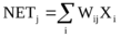 где NETj – выход NET нейрона j (выход фотодетектора j); Wij – вес связи от нейрона i к нейрону j (величина обратно пропорциональная прозрачности весовой маски в строке i, столбце j); Xi – i-я компонента входного вектора i (выход источника света i).