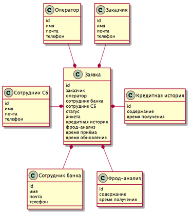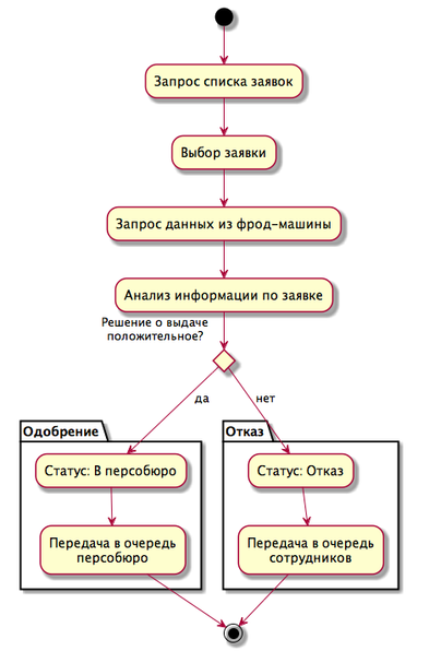 Приведено описание процесса обработки заявки оператором банка.