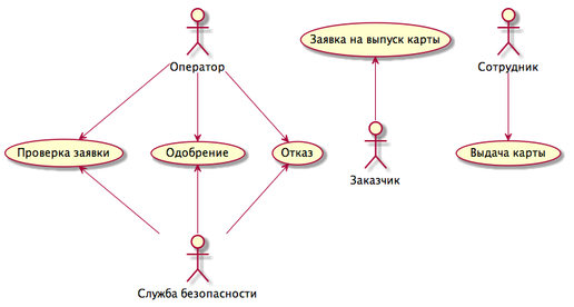 Приведено описание процесса обработки заявки сотрудником службы безопасности банка.