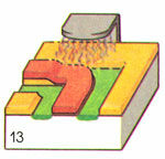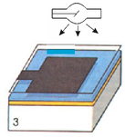 | Верхний слой двуокиси кремния удаляется при обработке горячим газом. Остается лишь сверхтонкий изолирующий слой. |
