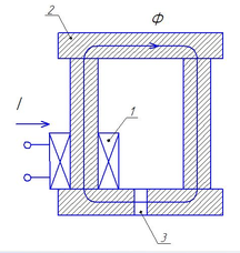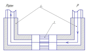 Рисунок 27 – Схема оснастки; 1 – катушка; 2 – магнитопровод; 3 – зазор; 4 – корпуса с каналами для подачи жидкости