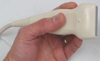 Sonography (ultrasonography) is widely used in medicine. It is possible to perform diagnosis or therapeutic procedures with the guidance of sonography (for instance biopsies or drainage of fluid collections). Sonographers are medical professionals who perform scans for diagnostic purposes. Sonographers typically use a hand-held probe (called a transducer) that is placed directly on and moved over the patient. A water-based gel is used to couple the ultrasound between the transducer and patient.