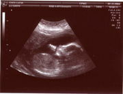 A fetus in the womb, viewed in a sonogram