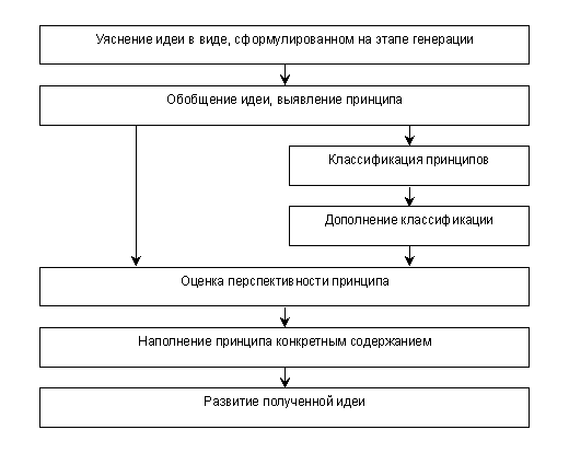 Этап анализа протекает в течение длительного времени, растягиваясь иногда на несколько дней. В течение всего этого времени происходит повторяющийся круг операций, связанных с анализом идей, выдвинутых на этапе генерации.