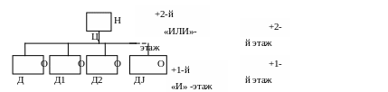 Минусовые этажи должны обеспечивать функционирование нулевого этажа (совокупность ИД). Поэтому 0 этаж ИД является целью для минус 1 – го «И» этажа, а минус 1 этаж является целью для минус 2 «ИЛИ» этажа.
