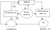 | 1. Понятие и определение творческой деят-ти (творчества). Творчество - вид деятельности, который порождает нечто новое, никогда ранее не существующее. Творчество всегда индивидуально. Творчество – это процесс, имеющий оригинальный характер хотя бы в одном из своих элементов. Результат творческой деятельности конкретного человека может быть не зависим от того существовал или не существовал ранее похожий результат. Процесс творческой деятельности возникает, когда человек ощущает потребность в чем либо. Потребность реализуется в результате умственной деят-ти и происходит в живом мозге. 2. Творческая функция Творческая функция - естественный атрибут живого мозга. Любое живое существо попадает в ситуации, когда необходимо решать новую неизвестную задачу, т.е. принять индивид. реш-е. Существуют определенные правила решения похожих задач. Но каждая ситуация - единична. Следовательно, каждое решение - индивидуально. Творческие функции присущи также и животным. У них лишь уровень задач ниже, чем у человека. Творчество сущ-т даже в природе (сталактиты, сталагмиты). У человека творчество - необходимость. Она целенаправленна, осмыслена, помогает выжить. 3. Творчество — как результат комбинирования Творчество - результат комбинирования существующих элементов в новые, ранее неизвестные комбинации, которые приводят к порождению новых предметов творчества. Чем большим объемом знаний обладает человек, чем более развит механизм мыслительное деят-ти. Комбинирование – это начальная фаза в творчестве. 4. Уровни (виды) новизны Один из основных критериев оценки любой деятельности как творческой является новизна результата деятельности. Существует 4 основных уровня новизны. а) Индивидуальная новизна. Новизна - то, что в результате творческой деятельности является новым для конкретного человека (преодоление проблем, решение задач). б) Коллективная новизна. Уровень коллективной новизны соотносится с уровнем той группы людей, которые занимаются одной проблемой, получают новые результаты. Различные люди, коллективы могут решать одну и ту же проблему. Новизна - новое решение для каждой конкретной группы людей. в) Регионально новые. Здесь рассматриваются территории, на которых реализуется творческая деятельность, и на которых порождаются новые результаты. В основном учитываются национальные особенности: - потребности, - менталитет, - особенности климата, - географические особенности. С изменением национальных и территориальных особенностей изменяются характер и форма творческой деятельности. Таким образом, на основе особенности региона, в котором получены новые результаты, порождается региональная новизна. г) Всемирная новизна (глобальная). В результате творческой деятельности порождается нечто никогда ранее не существовавшее в условиях земной цивилизации, Земли. Т.е. в результате имеем принципиально или существенно новое. 5. Потребность и творчество. Концептуальная модель творческой потребности Потребность человека - побуждающий мотив в творческой деятельности. Потребности эволюционируют вместе с развитием мозга человек - от потребности в еде и до бесконечности. Именно потребность рождает мотивацию. Потребность может быть направлена на реализацию: - материальных, - духовных; - социальных запросов личности. Удовлетворение любой потреб