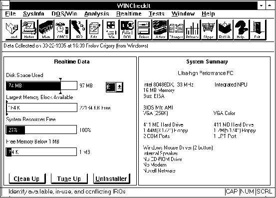 Теперь настало время подробно рассмотреть основные возможности приложения WINCheckit и привести рекомендации по его использованию. Мы остановимся только на самых важных возможностях WINCheckit. Полную информацию вы сможете получить из документации, поставляемой вместе с пакетом.