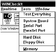 Наиболее важной возможностью, реализуемой приложением WINCheckit, является проверка работы всех подсистем компьютера. Все тесты, выполняемые WINCheckit запускаются из меню "Tests" (см. рис. 5.25).