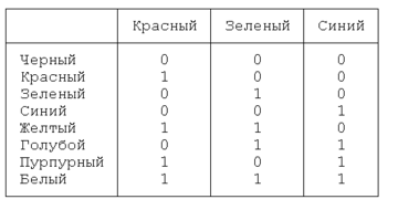Три основных цвета, комбинируясь на ЭЛТ, дают 8 цветов: