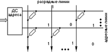 тличается тем, что для выборки одного слова используется одна адресная шина. ЗЭ, хранящие все разряды одного слова подключены к одной адресной линии. ЗЭ хранит один бит информации. Запоминающая ячейка (ЗЯ) предназначена для хранения одного числа и состоит из ЗЭ, кол-во которых равно разрядности хранимого слова. Разрядные линии предназначены для зп/сч информации.