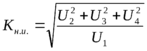Нелинейные искажения определяются коэффициентом нелинейных искажений, который равен квадратному корню из отношения суммы мощностей гармоник возникающих при искажениях к мощности основной гармоники
