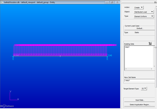 | Trans Accel<A1,A2,A3> | < 0 , -40220 , 0>- распределенная нагрузка приложена вдоль оси Оу |