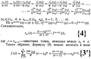 оторый наз. многочленом Тейлора n-й степени или n-м многочленом Тейлора функции f по степеням х–x0. Многочлен Qn(x) совпадает с функцией f(х) в точке x0 но для всех х он не равен f(х) (если f(х) не является многочленом степени n). Кроме того, Q'n(x0)=f'(x0),...,Q(n)n(x0)=f(n)(x0) {2}. Положим f(x)=Qn(x)+rn(x) {3}. Формула {3} носит название формулы Тейлора для функции f(x); rn(х) наз. остаточным членом формулы Тейлора, – подробнее, n-м остаточным членом формулы Тейлора функции f пo степеням х–x0. Функция rn(х) показывает, какую погрешность мы допускаем при замене f(x) на многочлен Тейлора {1}.