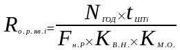 Расчет явочной численности основных рабочих (Rо.р.яв., чел.) производится по каждой профессии по формуле: