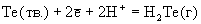 H2Te удобно также получать катодным восстановлением теллура при 0оС. Анодом служит платиновый электрод, а электролитом 50%-ная серная кислота