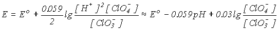 величина потенциала уменьшается от Ео = 1.02 В при рН = 0 до Ео= +0.37 при рН=14. Таким образом, окислительная способность солей ниже, чем соответствующих кислот.