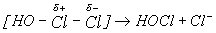 хлорноватистой кислотой HClO. Результаты (K.D.Fogelman, D.M.Walker, D.W.Margerum. Inorg.Chem, 1989, V.28, P.986-993) изучения скорости реакции показывают, что первый медленный этап - нуклеофильное (Нуклеофильные (от латинского слова "нуклеус" - ядро) частицы - частицы со свободной электронной парой, стремящиеся к остову (ядру) другой частицы, имеющей пустую орбиталь)присоединение к атому хлора иона