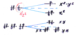 2. Деформация октадрической конфигурации в тетраэдрическую из- за эффекта Яна- Теллера для Cu2+ конфигурацией d9.
