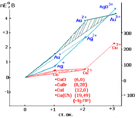 Ео < 0 G > 0 , поэтому Cu Ag Au в ряду напряжений располагаются после Н