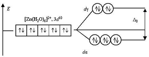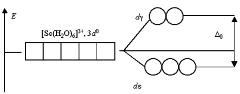 Если комплексообразователь имеет электронную конфигурацию d0 или d10, то переходы электронов с d- на d-подуровень или наоборот невозможны либо из-за отсутствия электронов, либо из-за отсутствия вакантных орбиталей. Поэтому растворы комплексов с такими комплексообразователями, как Sc(III), Cu(I), Zn(II), Cd(II) и т.п., не поглощают энергии в видимой части спектра и кажутся бесцветными: