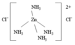 Внешнесферные ионы Cl находятся на более значительном удалении от комплексообразователя, чем молекулы NH3, иначе говоря, расстояние Zn – Cl больше, чем длина химической связи Zn – N. Более того, химическая связь комплексного катиона [Zn(NH3)4]2+ и хлорид-ионов Cl имеет ионный характер, в то время как молекулы аммиака NH3, входящие во внутреннюю сферу, образуют с комплексообразователем Zn(II) ковалентные связи по донорно-акцепторному механизму (донором неподеленных пар электронов являются атомы азота в NH3). Таким образом, различие между лигандами внутренней сферы и ионами внешней сферы очень существенно.