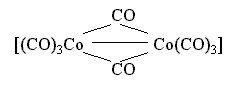 Здесь имеется одинарная связь Co – Co и два бидентатных карбонильных лиганда CO, осуществляющих мостиковое соединение атомов-комплексообразователей.