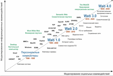 С появлений технологий Web 2.0 изменяется сама концепция виртуального пространства. Любой пользователь, имеющий доступ в Интернет, получает автоматически возможность, с одной стороны, помещать там свою информацию, а с другой – немедленно реагировать, изменять, дополнять, подтверждать или опровергать информацию других пользователей. Таким образом, взаимодействие пользователей в виртуальном пространстве из вертикального трансформируется в горизонтальное, появляется возможность не только публиковать собственную информацию, но и реагировать на информацию других пользователей.