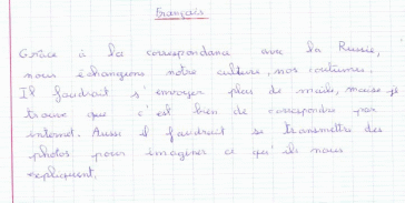 Переписка с российскими школьниками позволила мне получить удовольствие от уроков французского языка, поскольку я увидел, что не единственный, у кого проблемы с французским языком.