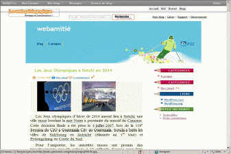 Рис. 3 Личное пространство внутри блога « Webamitié » со счетчиком посещений, статей и комментариев к ним