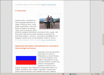 Фрагменты франкофонного блога «De Caen à Kolomna » (www.francekgpi.blogspot.com) студентов Московского государственного областного социально-гуманитарного института (бывшего Коломенского государственного педагогического института), которые имеют возможность каждый семестр уезжать на трехмесячную языковую стажировку в педагогический университет Нижней Нормандии (г. Кан, Франция). В своем журнале студенты рассказывают о пребывании во Франции, о местной системе высшего образования, о повседневной жизни французских студентов. Сокурсники, оставшиеся в КГПИ, комментируют выложенные в блоге статьи, просят рассказать об определённых сторонах французской студенческой жизни.