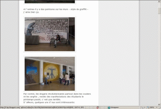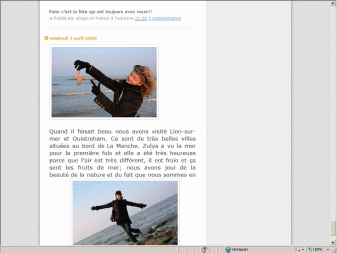 Первый блог http://anthropometrique.blogspot.com/ создан французской студенткой. Необходимо отметить его оригинальность, стиль, психологический настрой, близкий большинству подростков. Приведём примеры текстов, которые вызвали интерес у старшеклассников и студентов, изучающих французский язык в Коломне (Московская область). После того, как один из отрывков ее журнала был изучен в классе, учащимся предлагалось исправить «неточности» языка Интернета и «перевести» данный текст на стандартный французский язык в соответствии с правилами грамматики и орфографии.