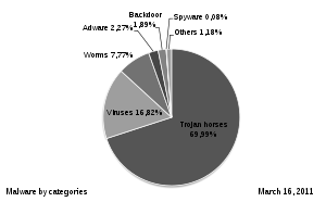 Preliminary results from Symantec published in 2008 suggested that "the release rate of malicious code and other unwanted programs may be exceeding that of legitimate software applications."[10] According to F-Secure, "As much malware [was] produced in 2007 as in the previous 20 years altogether."[11] Malware's most common pathway from criminals to users is through the Internet: primarily by e-mail and the World Wide Web.[12]