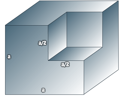 Задача. При изготовлении куба со стороной a из него был вырезан кубик с ребром a/2. Где находится центр тяжести нового тела с полостью?