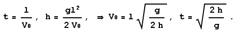 Здесь t – время падения ядра. Далее определим V0 и t: